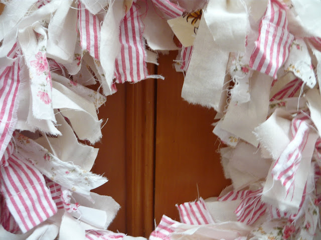 Then we tied the rags all around the wreath until it was good and fluffy like.